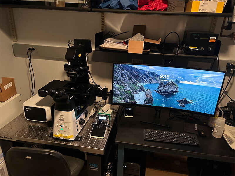 Our two Ni-E upright microscopes feature both color and monochrome CCD cameras, supporting a number of epifluorescence and transmitted light applications.