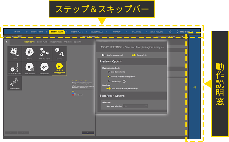 All wells selected for acquisition:本撮像を⾏うすべてのウェルでPreview 撮像を⾏います。